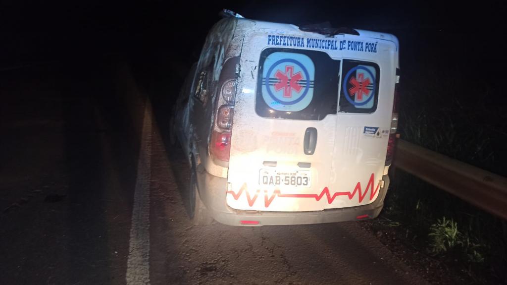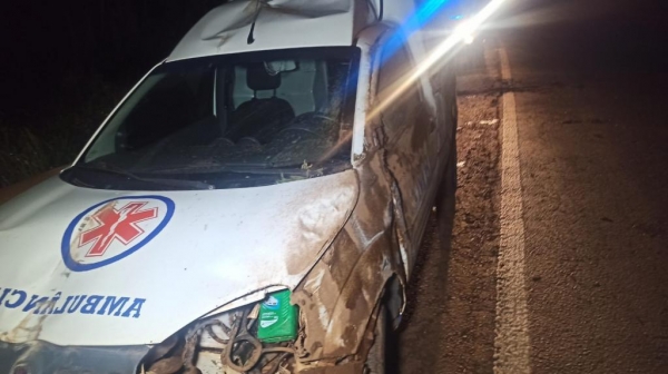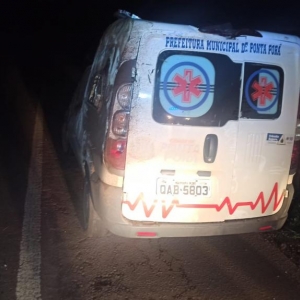 Um acidente aconteceu na noite desta quarta-feira na rodovia BR 467 após o distrito de Sede Alvorada no sentido a Cascavel próximo ao radar e envolveu uma ambulância com placas do município de Ponta Porã, Mato Grosso do Sul.