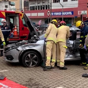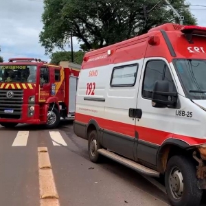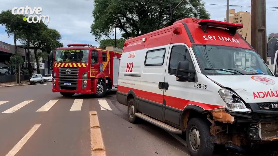 Uma ambulância do Serviço de Atendimento Móvel de Urgência (Samu), da Unidade de Suporte Básico (USB), se envolveu em um grave acidente de trânsito com um carro, no centro de Cascavel, na manhã desta sexta-feira (8).
