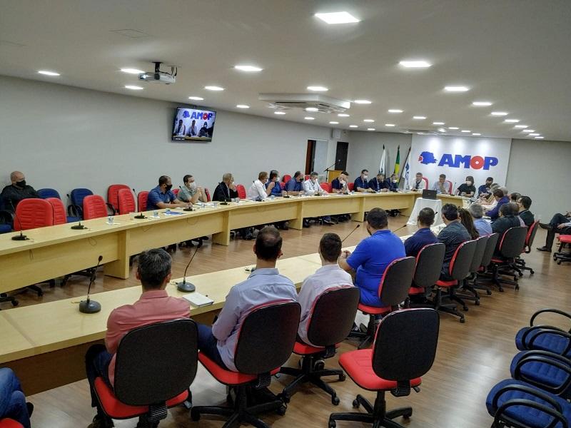 Reunidos na manhã desta quinta-feira (23), em Cascavel, prefeitos e prefeitas da região Oeste participaram da 9ª AGO (Assembleia Geral Ordinária) da Amop de 2021, com ampla pauta de assuntos. O encontro foi comandado pelo prefeito de Cascavel e presidente da Amop, Leonaldo Paranhos.