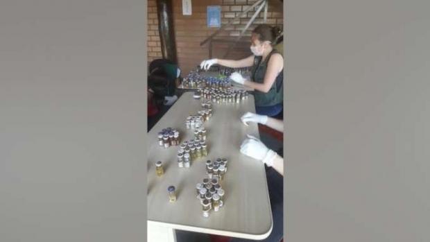Na manhã de hoje (11) servidores municipais realizaram a separação dos frascos para contabilização e organização do material.