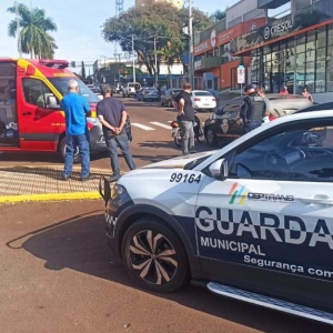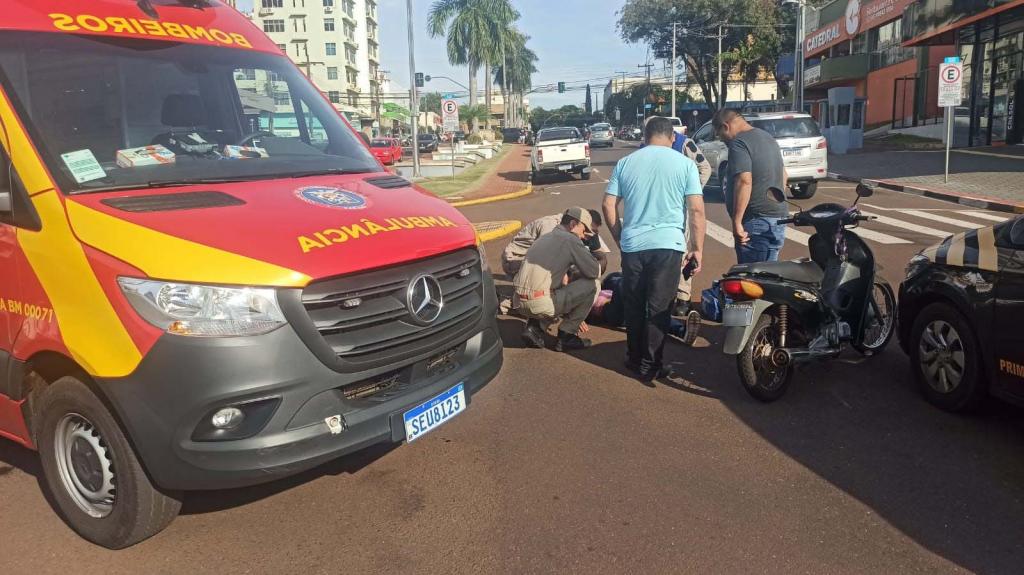 O Corpo de Bombeiros foi acionado e prestou atendimento à condutora da moto, que teve escoriações leves. No entanto, ela recusou ser encaminhada ao hospital. A Guarda Municipal esteve no local para atender a ocorrência.