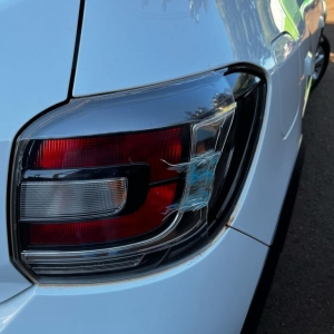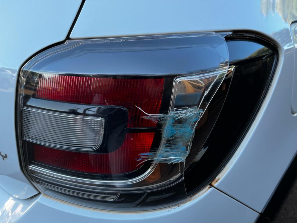 Apesar do susto, o impacto não foi forte, e danificou apenas o farol traseiro direito do carro.