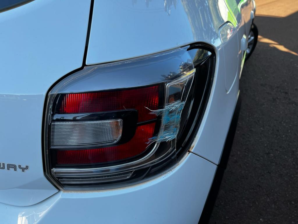 Um veículo Renault Sandero, de cor branca, estava estacionado em frente ao Posto de Saúde, na rua Guarani, área central de Nova Santa Rosa.