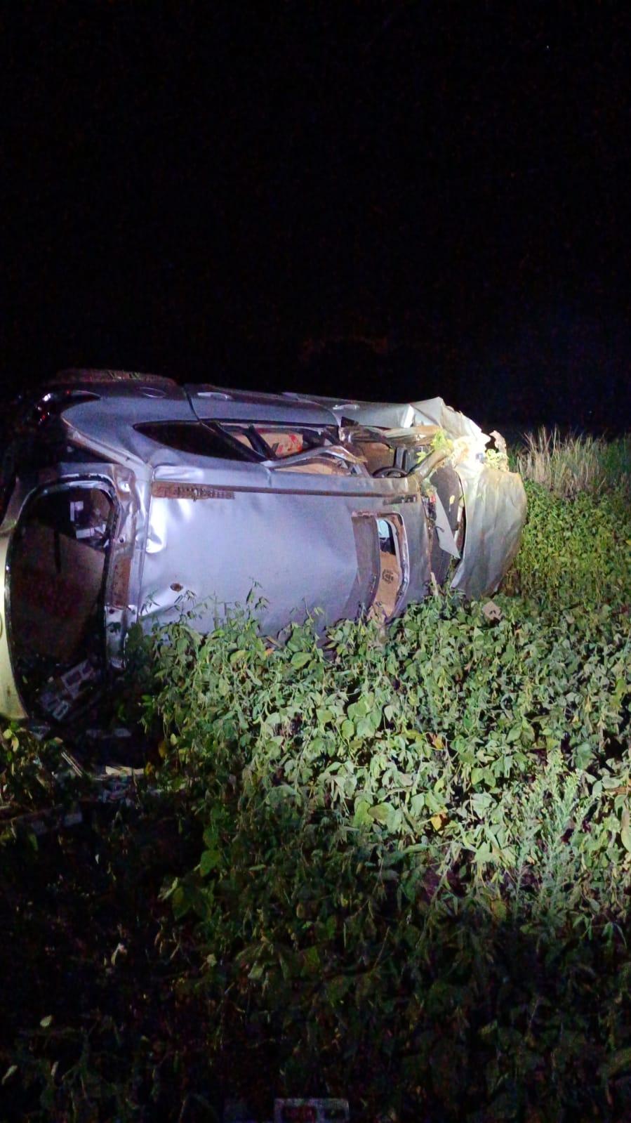 No sentido trevo de Terra Roxa, nas proximidades da Vila Guarani, o condutor do veículo perdeu o controle saindo da pista e capotando em meio a plantação de soja, onde o condutor conseguiu se evadir.