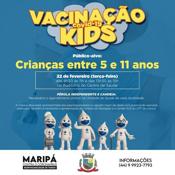 A Secretaria de Saúde de Maripá dará sequência à vacinação pediátrica contra a Covid-19 na próxima terça-feira (22). A aplicação será no auditório do Centro de Saúde de Maripá, das 8h30 às 11h e das 13h30 às 15h. Nos distritos de Pérola Independente e Candeia, é necessário fazer o agendamento prévio na Unidade de Saúde de cada localidade.