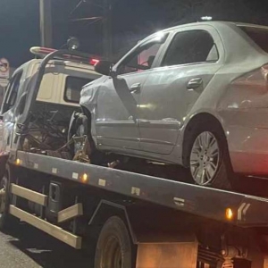 Ao tentar abordagem, o condutor empreendeu fuga pela BR-163 em direção à Marechal Rondon. Os policiais iniciaram um acompanhamento tático que perdurou por 10 km, até a região de Novo Horizonte, onde o veículo colidiu com o guard-rail da rodovia.