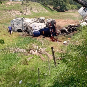No fim da manhã desta quinta-feira uma carreta carregada com etanol seguia no sentido Santo Antônio a Joaquim Távora quando acabou se envolvendo em um acidente com uma carreta que seguia no sentido contrário.