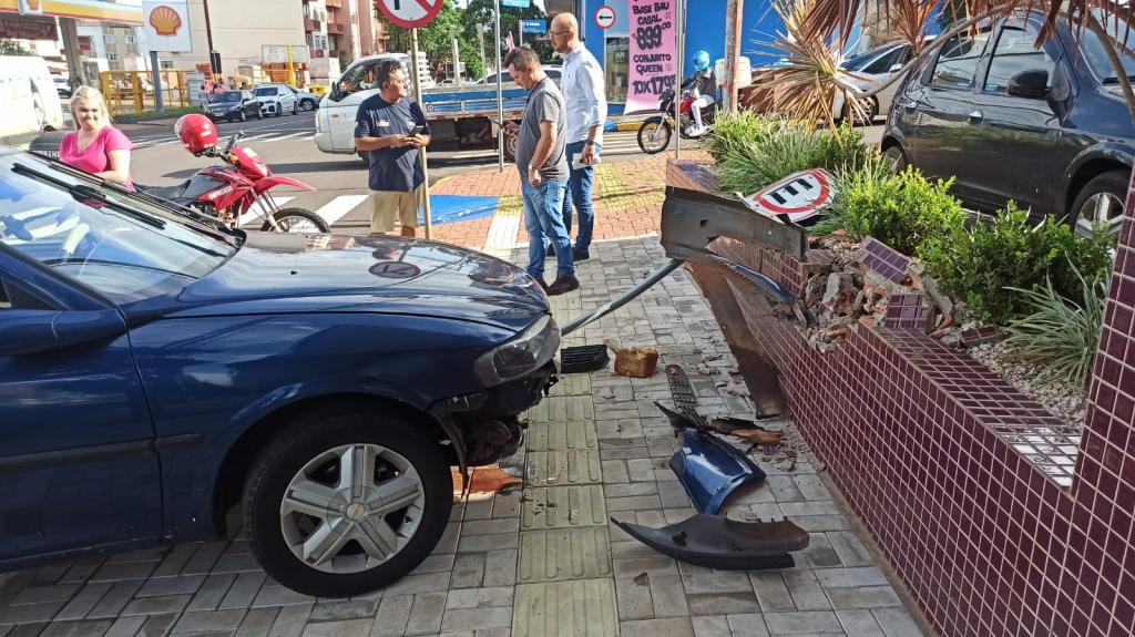 No cruzamento das vias aconteceu a colisão, após o Vectra cruzou a pista contrária e avançou sobre a calçada atingindo uma placa de sinalização e a mureta de um prédio aonde funciona um consultório odontológico. Os danos nos veículos foram de grande monta, mas ninguém se feriu.