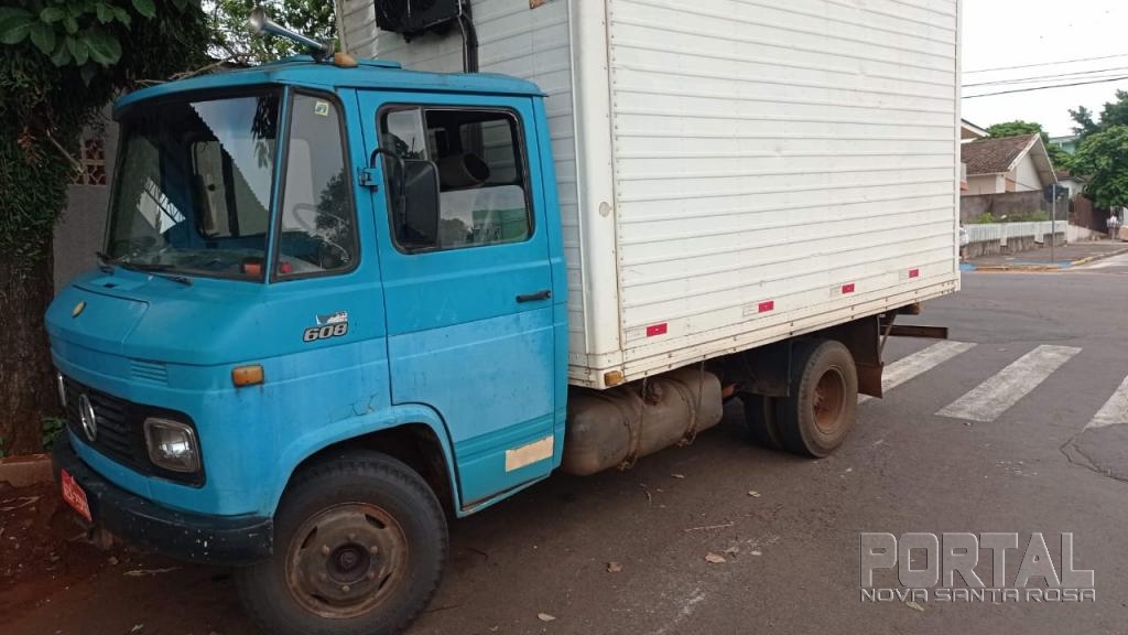 O caminhão Mercedes-Benz modelo 608 com placas de Toledo foi recuperado na noite desta quinta-feira na rua Ledoíno José Biavatti na Vila Industrial em Toledo.