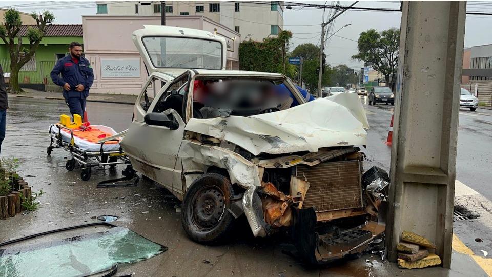 A batida ocorreu na esquina das ruas Jorge Lacerda com Presidente Kennedy e envolveu Fiat Uno e Fiat Strada. O cruzamento é controlado por semáforos.