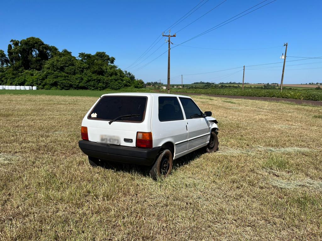 Um veículo Uno com placas de Toledo, foi localizado na Linha Machado de Assis, sentido ao distrito de Alto Santa Fé, na manhã desta quinta-feira.