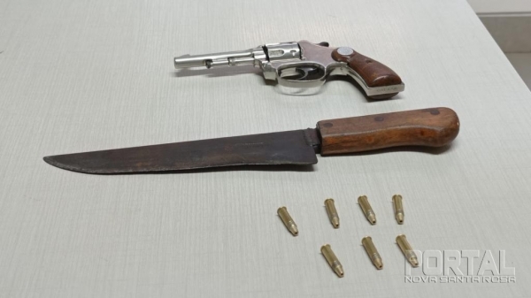 O indivíduo que estava de posse da arma e da faca foi encaminhado à 20ª SDP de Toledo para os procedimentos cabíveis.