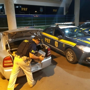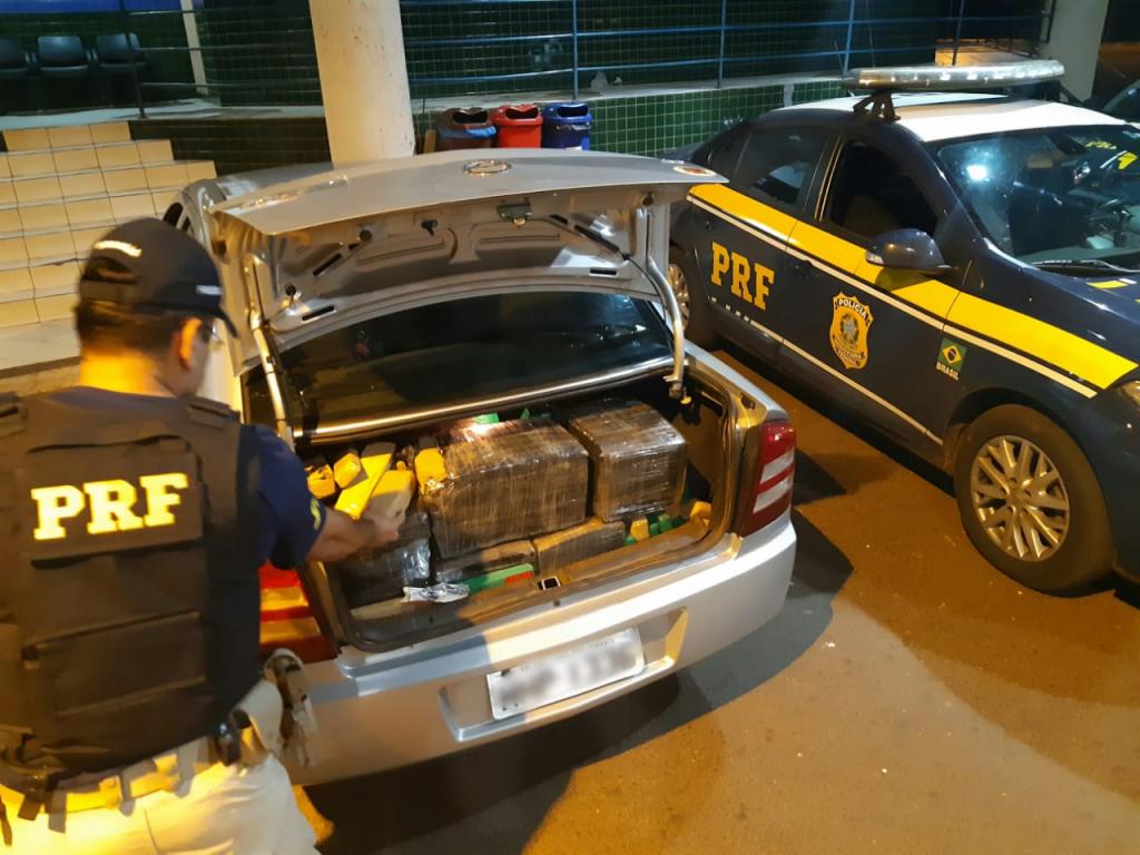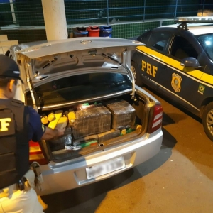 A droga estava acondicionada no porta malas do veículo. A ocorrência foi encaminhada para a Delegacia de Polícia Federal de Guaíra.