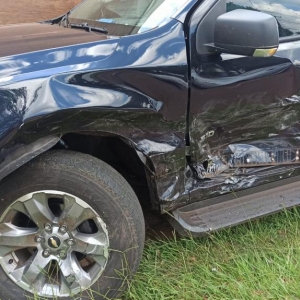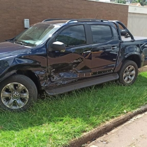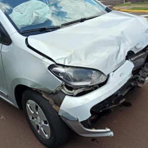 Houve uma forte colisão no cruzamento da Rua 15 de novembro com a Rua Guaíra, envolvendo uma caminhonete Chevrolet S10 e um veículo Volkswagen Up, ambos com placas Mercosul.