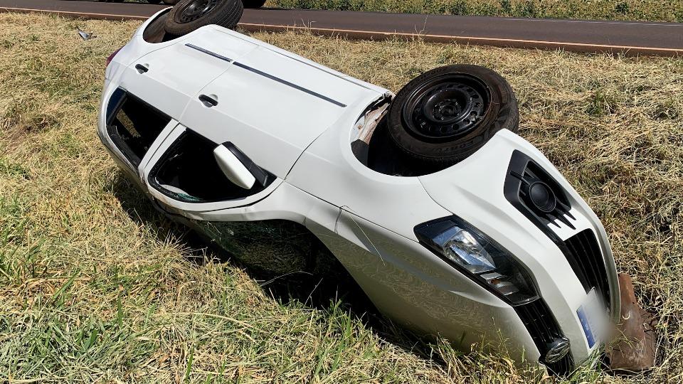 De acordo com as informações, o motorista do Volkswagen Gol perdeu o controle da direção, saiu da pista, bateu contra um barranco do canteiro central e capotou.