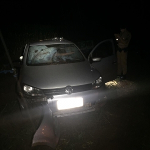 Conforme a PM, durante patrulhamento o veículo foi visto em atitude suspeita e na tentativa de abordagem o condutor se evadiu em alta velocidade, dando inicio a um acompanhamento. Já na rodovia, nas proximidades da Linha Cinco Mil, em uma curva, o motorista acabou perdendo o controle de direção, capotando o carro e atingindo um poste de energia elétrica.