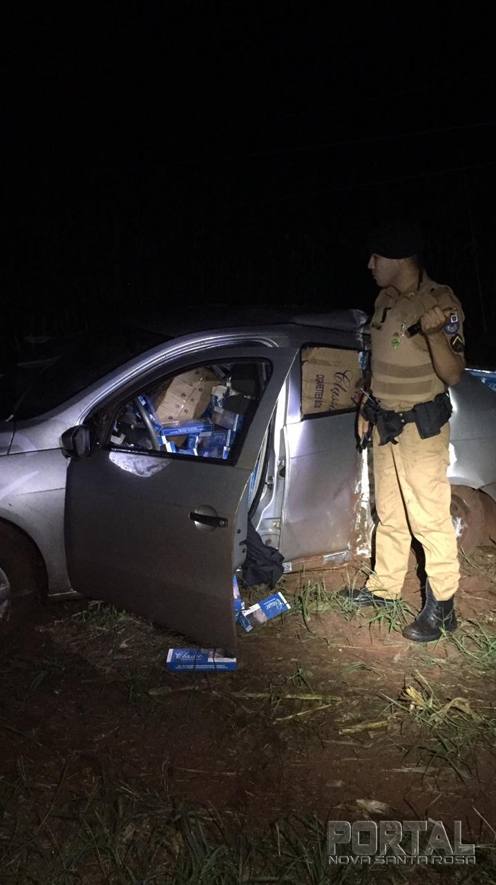 Na noite desta sexta-feira (26), durante um acompanhamento tático, um contrabandista acabou capotando um veículo na PR-364, entre Palotina e Assis Chateaubriand.