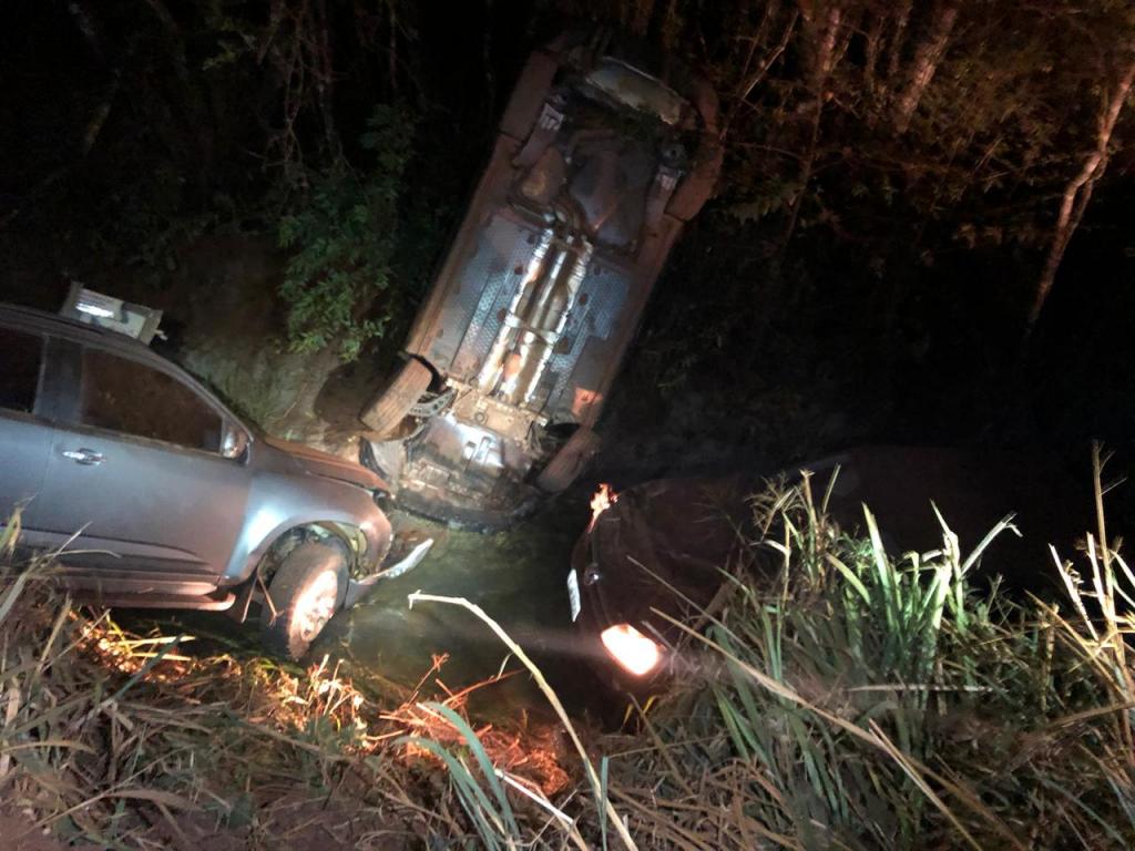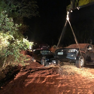 Os veículos estavam carregados com aproximadamente 1300 pacotes de cigarros oriundos do paraguai e durante acompanhamento tático acabaram perdendo o controle e caindo em um riacho naquela localidade.