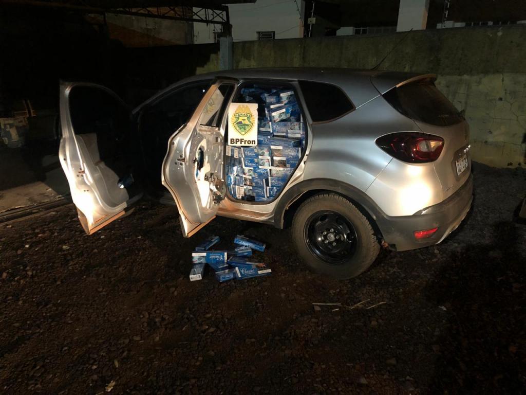 Na madrugada deste domingo (31), Policiais militares do BPFron - Batalhão de Polícia de Fronteira, em mais uma ação da Operação Hórus quando em patrulhamento pela cidade de Terra Roxa, deram ordem de parada ao veículo Renalt Captur, a qual não foi acatada, iniciando-se assim acompanhamento tático, quando em dado trecho o condutor abandonou o veículo, que ao ser checado estava carregado com 35 caixas de cigarros contrabandeados do Paraguai .