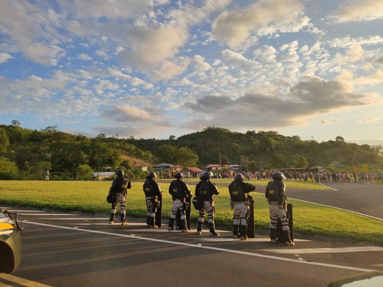 Após a interdição do trânsito no local, os indígenas atacaram aos policiais e apedrejaram as viaturas. A PRF mobilizou reforço policial especializado, sendo necessário o emprego do seu Grupo de Choque. Durante as negociações, foi necessário o uso de equipamentos de controle de distúrbios (gás lacrimogênio). O trânsito na via foi normalizado por volta das 19h15 sem que houvesse registro de policiais ou indígenas feridos.