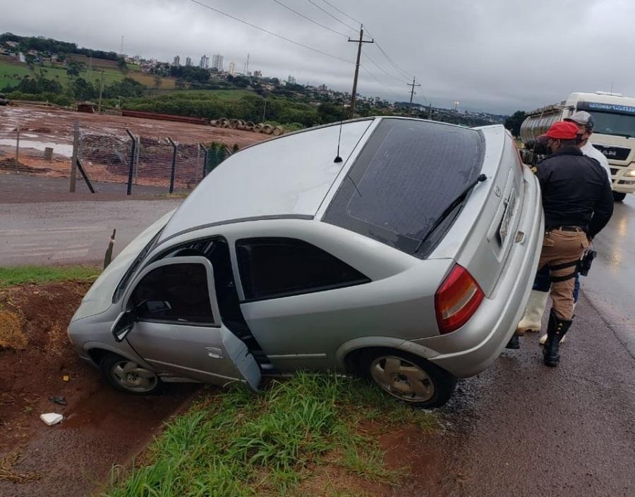 Segundo informações, os policiais deram ordem de parada a um veículo Astra, placa de Curitiba, que empreendeu fuga, perdeu o controle e caiu em um barranco.