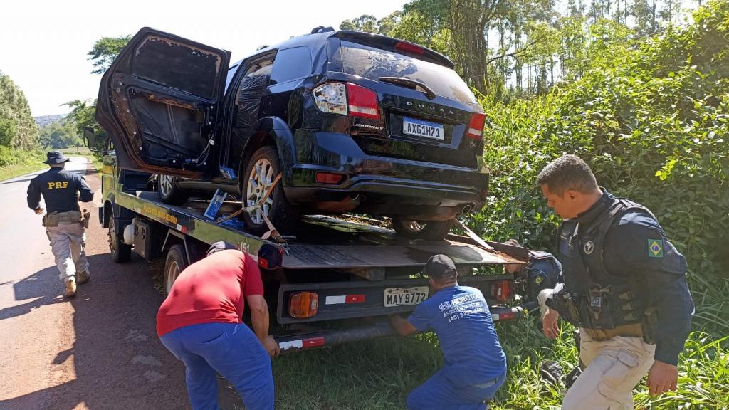 O carro foi guinchado pelo guincho da PRF e encaminhado para receita federal em Cascavel.