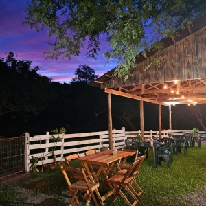Além do restaurante, na Odara você também pode aproveitar o ambiente externo que conta com um Pequeiro e o parquinho para as crianças.