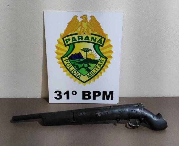 A Polícia Militar de Palotina foi acionada de forma anônima informando de um volume abandonado no ponto de ônibus na saída para Terra Roxa, equipe deslocou ao endereço e constatou ser uma arma de fogo de fabricação caseira.