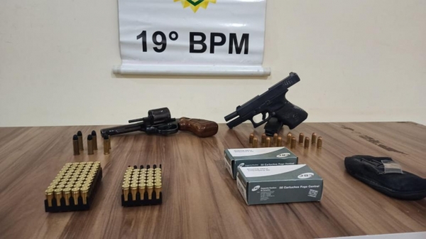 A Polícia Militar apreendeu outras duas caixas de munição 9 milímetros com 86 munições dentro de uma caminhonete S-10. Porém, o homem disse que não era o proprietário do veículo e não teria conhecimento das munições.