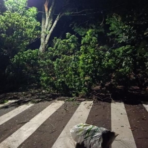 Equipes da defesa Civil realizaram o corte dos galhos e a limpeza da pista.