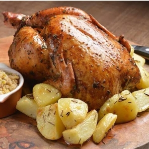 - Frango Assado COM OU SEM Recheio (acompanha batata assada e farofa);