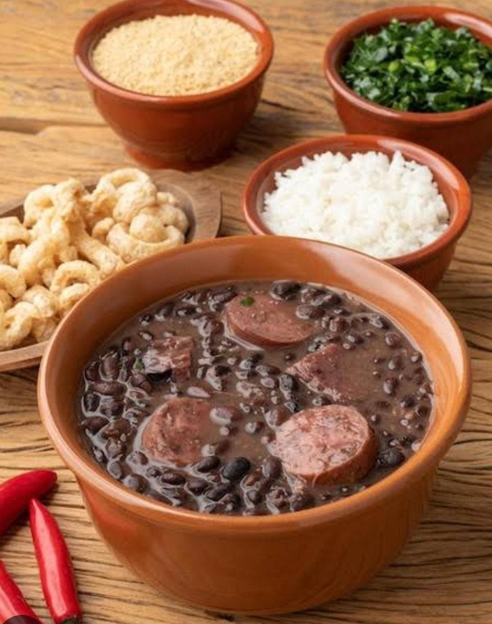 Serão porções para duas pessoas, sendo uma marmita com aquela feijoada gostosa no capricho, e outra com os acompanhamentos: farofa, arroz e couve refogada.