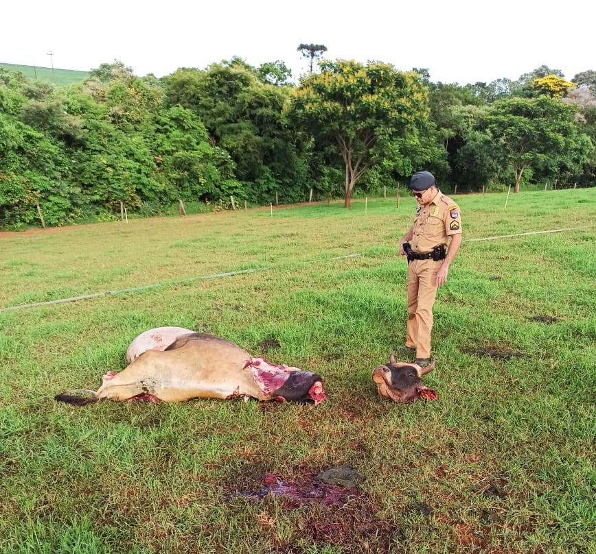 Nesta manhã de sábado (28), uma equipe da Polícia Militar de Tupãssi, foi informada sobre um animal abatido, na propriedade Linha Água Memória, interior do município.
