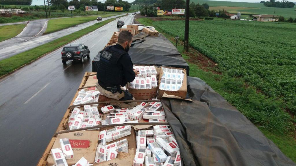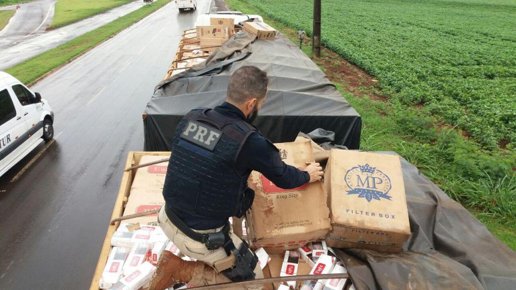 A Polícia Rodoviária Federal (PRF) apreendeu cerca de 600 mil carteiras de cigarro no final da madrugada desta segunda-feira (9) em Quatro Pontes, na região oeste do Paraná. Contrabandeada do Paraguai, a carga apreendida é avaliada em R$ 3 milhões.
