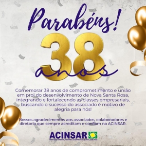 A ACINSAR – Associação Comercial, Industrial e Agropecuária de Nova Santa Rosa - está completando hoje, dia 19 de novembro, 38 anos de história junto ao município.