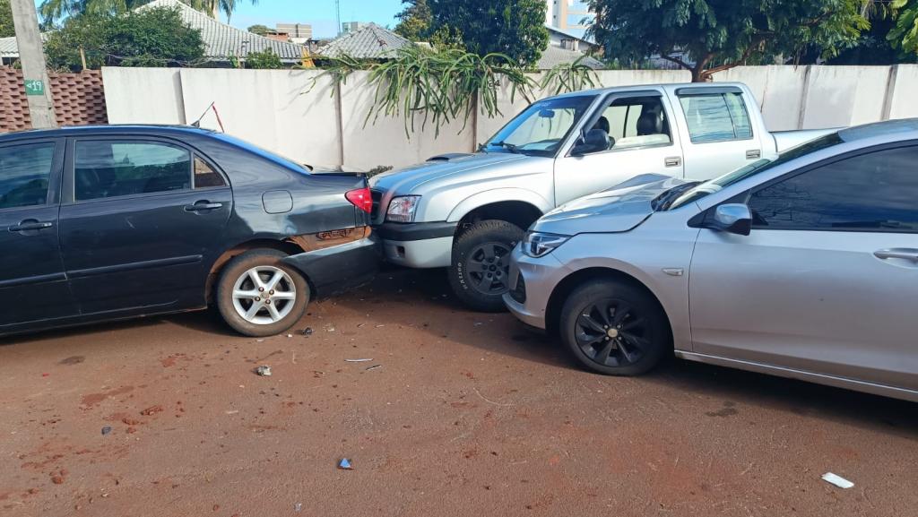 Um acidente de trânsito do tipo atropelamento seguido de colisão contra veículos estacionados aconteceu nesta manhã de terça-feira (5) na Rua Bonfim, região central de Toledo. A ocorrência envolveu um Chevrolet Onix, uma caminhonete Chevrolet S10 e um Toyota Corolla.