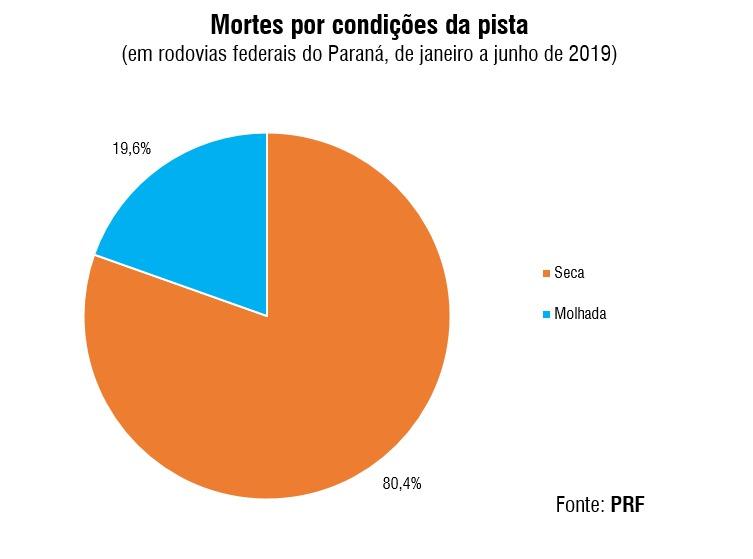 A maioria das mortes foram registradas em situação de pista seca (80,6%), em retas (71,8%), à noite (60,5%) e em trechos de pista simples (50,6%).