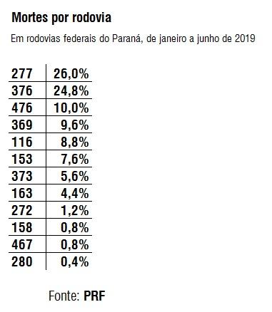 Até então, o ano menos violento nas rodovias federais paranaenses havia sido o de 2015, quando 583 mortes foram contabilizadas. O pico de vítimas mortas ocorreu em 2012 (855).