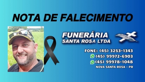 Os pais Ivo e Ilse Gabriel, e família de Alto Santa Fé, Nova Santa Rosa, com pesar comunicam o falecimento do filho e irmão, Charles Nedir Gabriel, ocorrido hoje (03) aos 40 anos.