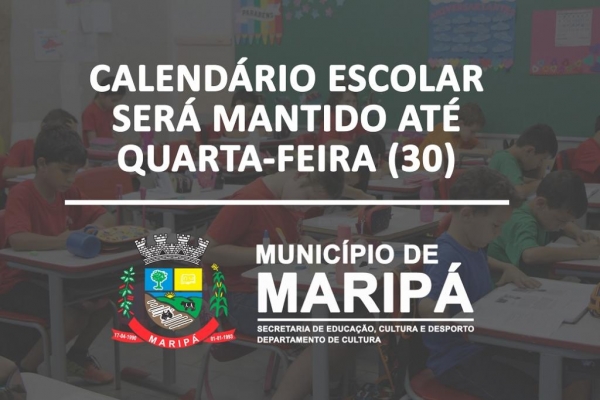 A Secretaria de Educação, Cultura e Desporto informa que as aulas serão mantidas até quarta-feira (30) em Maripá. O transporte escolar também funcionará normalmente neste período. A decisão foi tomada na manhã desta segunda-feira (28), em reunião realizada entre a equipe da secretaria e os diretores das escolas municipais, colégios estaduais, Centro Municipal de Educação Infantil e da rede particular de ensino.