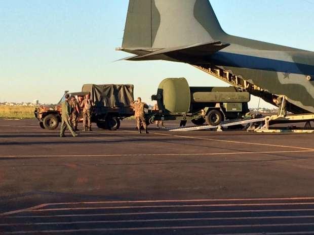 As equipes da FAB acompanham o transporte dos equipamentos.