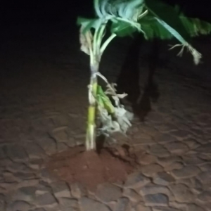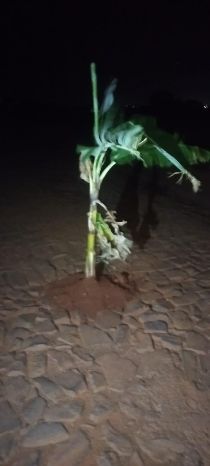 Bananeiras foram plantadas nos buracos de uma estrada no distrito de Novo Três Passos, no interior de Marechal Cândido Rondon - que liga o município à Quatro Pontes. A ação ocorreu nas proximidades do clube da comunidade, onde o calçamento de pedras está em más condições.