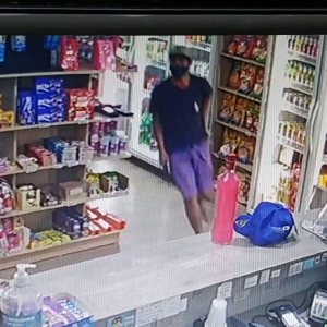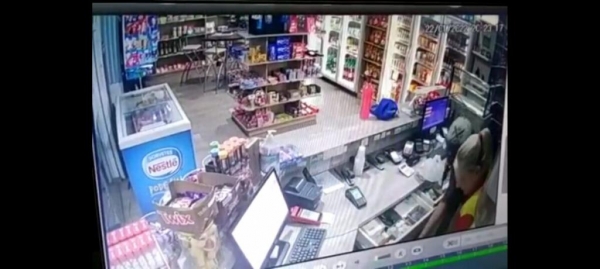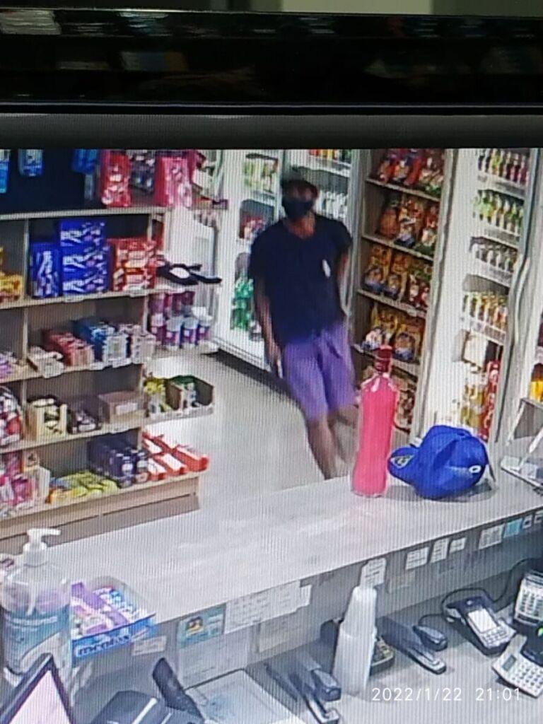 Um elemento de boné cinza com a aba preta, usando máscara (prevenção contra covid-19), camisa preta e bermuda roxa, adentrou a loja de conveniência do posto, e ficou observando movimento dentro do estabelecimento. O homem pegou um boné e posicionou sobre o balcão do caixa, em seguida posicionou uma garrafa e na sequência sacou um revólver, apontou para a funcionária e anunciou o assalto.