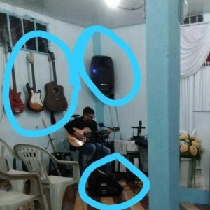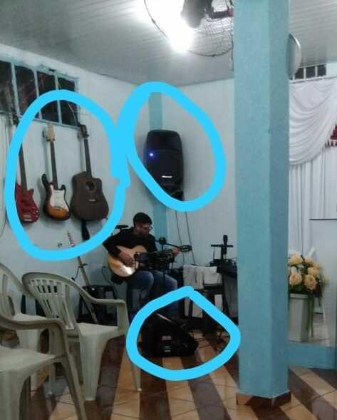 Estamos divulgando abaixo uma foto onde aparecem os instrumentos furtados marcados em azul.