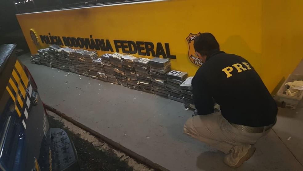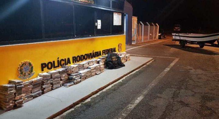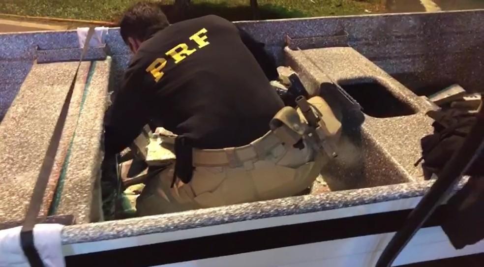 Segundo a PRF, a droga estava escondida dentro de um barco que era transportado pelo caminhão.
