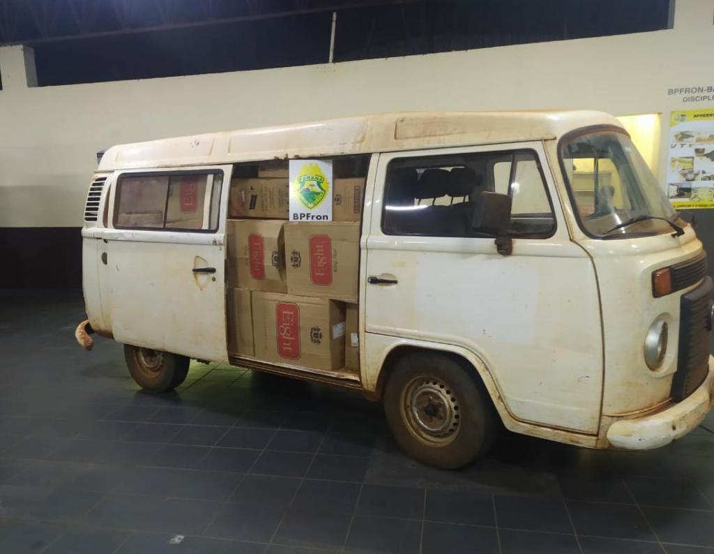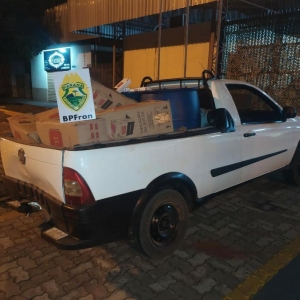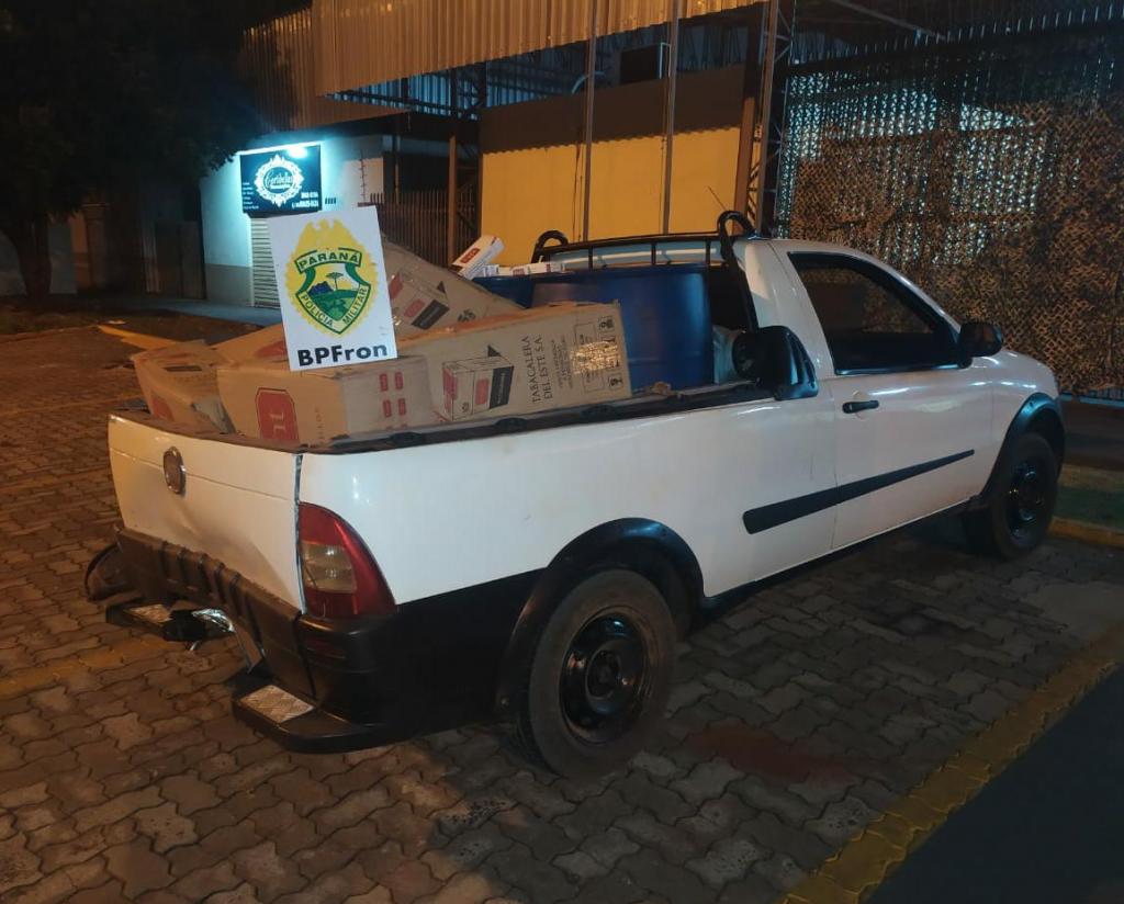Os condutores sumiram em meio à mata . Os veículos estavam carregados com aproximadamente 34.500 carteiras de cigarros de marca paraguaia, no veículo FIAT/STRADA além dos cigarros contrabandeados, haviam dois tonéis com combustível.