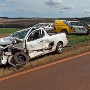 Um acidente foi registrado na tarde deste domingo na rodovia PR-317 próximo a localidade de Linha Sanga Funda entre os municípios de Toledo e ouro Verde do Oeste e envolveu um veículo Chevrolet Montana e uma caminhonete Chevrolet S10.