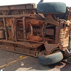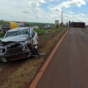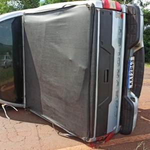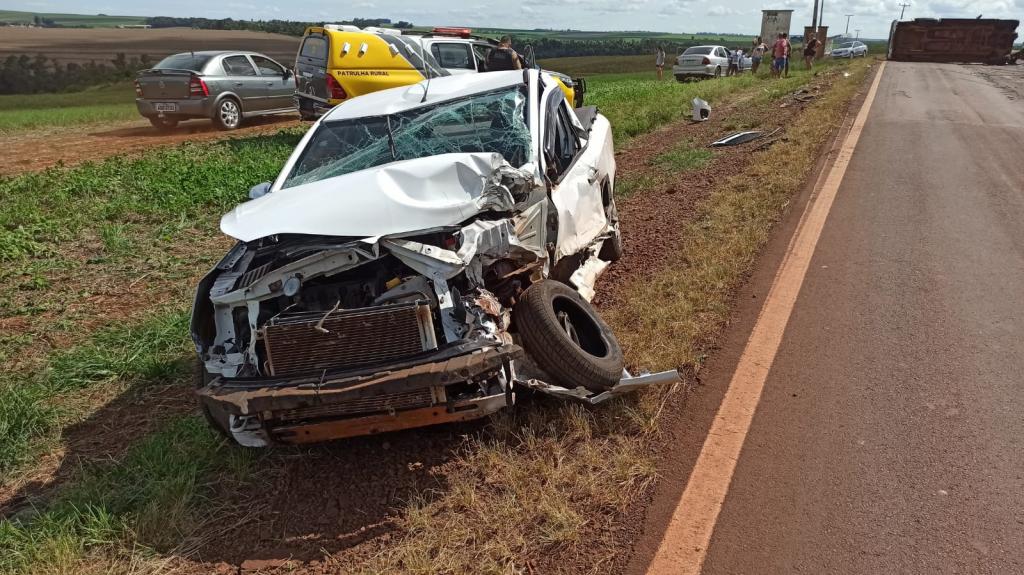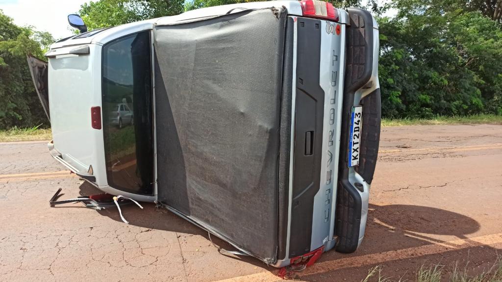 Após a colisão a caminhonete Chevrolet S10 tombou de lado ficando atravessada na pista interditando o tráfico nos dois sentidos obrigando aos motorista a usar um desvio por dentro de uma lavoura.