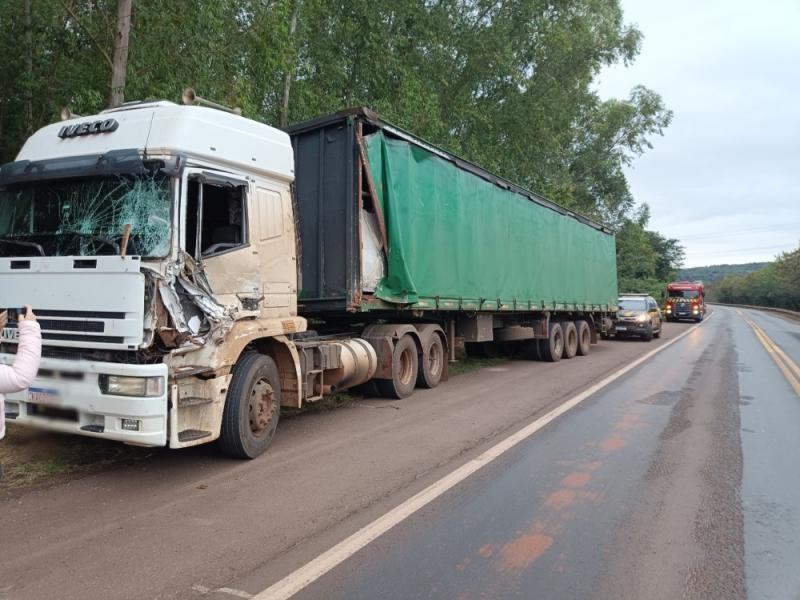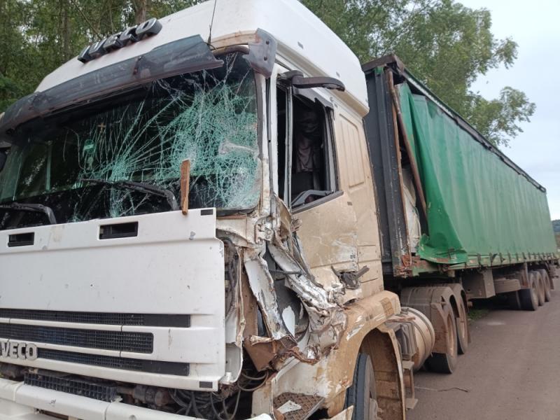 Batida entre caminhões mobiliza Bombeiros, SAMU e PRF na BR-163 em Mercedes