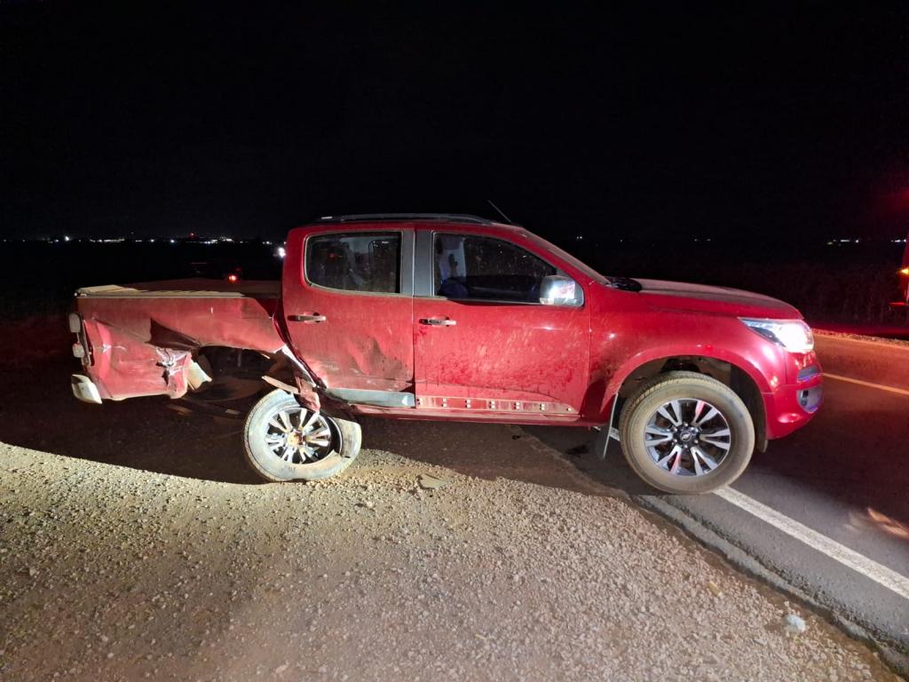 Colisão envolveu um GM Onix e uma caminhonete S-10 e mobilizou equipes de socorro na noite de domingo (08)
